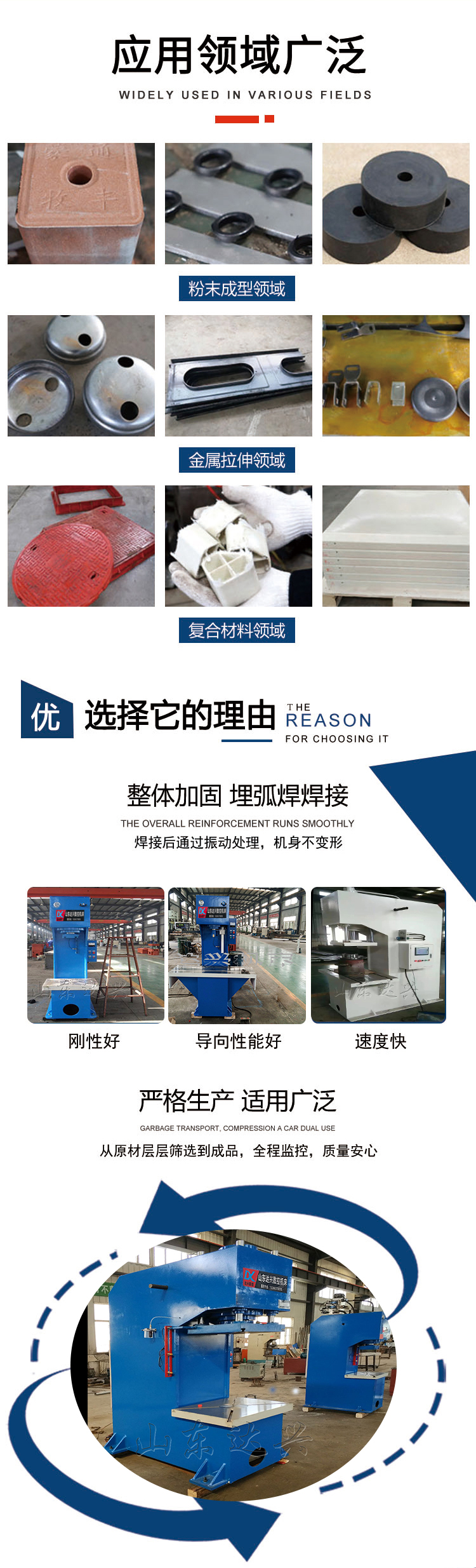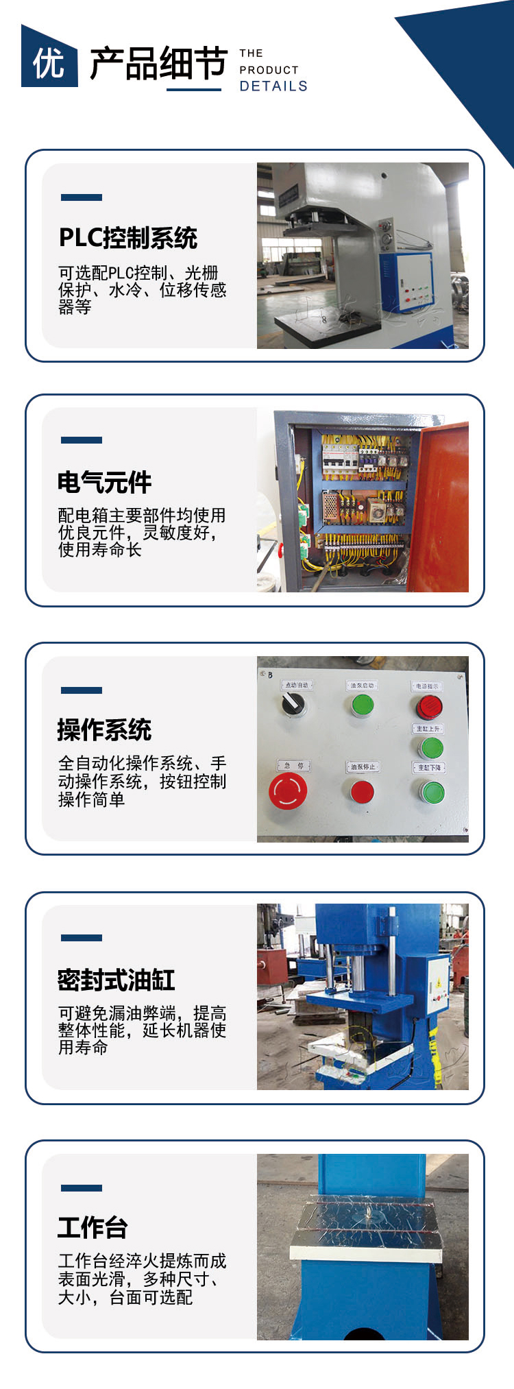 單柱(C型)系列液壓機(jī)主要適用于軸類和其他類似零件、型材的校正工藝。也可作為軸、套類零件的壓裝和板材原件的彎曲、拉伸、成型、落料、壓印等。主要應(yīng)用于塑料制品、機(jī)床、內(nèi)燃機(jī)、輕紡機(jī)械、軸類、軸承、洗衣機(jī)、汽車電機(jī)、空調(diào)電機(jī)、電器、軍工企業(yè)、三資企業(yè)裝配流水線等行業(yè)使用。非標(biāo)定制10噸-1000噸不同工作臺(tái)面,不同開口、行程、喉深單臂式液壓機(jī)。實(shí)體廠家,質(zhì)量售后有保障,支持現(xiàn)場面談、視頻驗(yàn)廠。